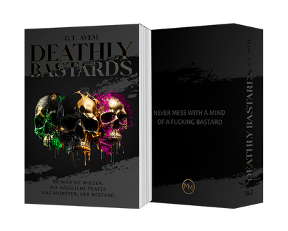 Einige Szenen der Deathly Bastard sind explizit formuliert. Solltest du dich unwohl bei Themen wie Drogen, Mobbing, Selbstmord, Sex, Verrat und Verbrechen fühlen, dann rate ich dir von diesem Buch ab. Für manche entstehen Gestalten, Visionen und Szenen, die sich aus den Zeilen in ihr Leben bewegen und NIE wieder daraus verschwinden. Auch wenn ihr in diesem Buch keinen Safersex finden werdet: